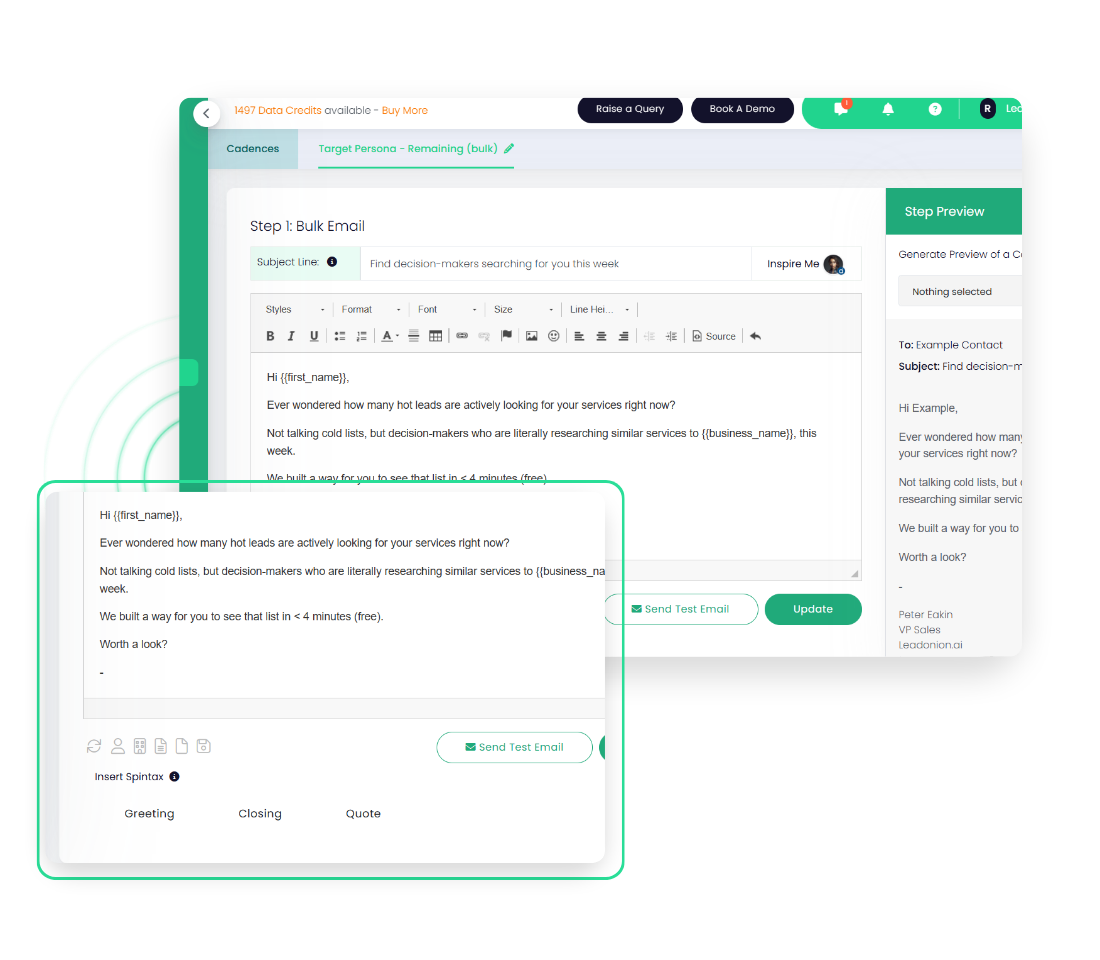 Use dynamic fields, spintax, and A/B testing to experiment with subject lines, messaging, and timing. Every cadence adapts to what works — improving engagement and conversion rates over time.